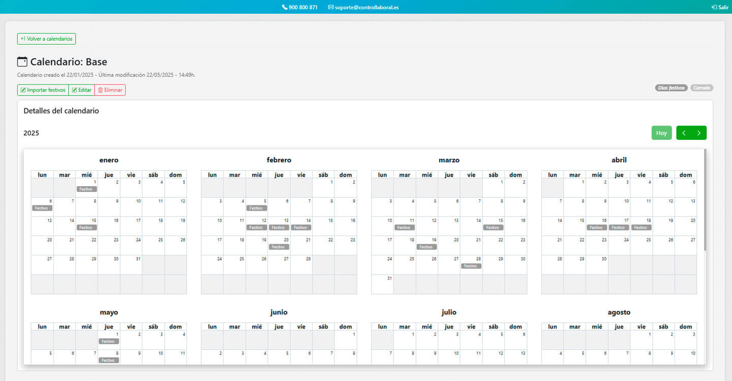 Desde esta sección podrás configurar el calendario laboral de tu empresa, marcando los días festivos y adaptándolo a la actividad real de tu organización.